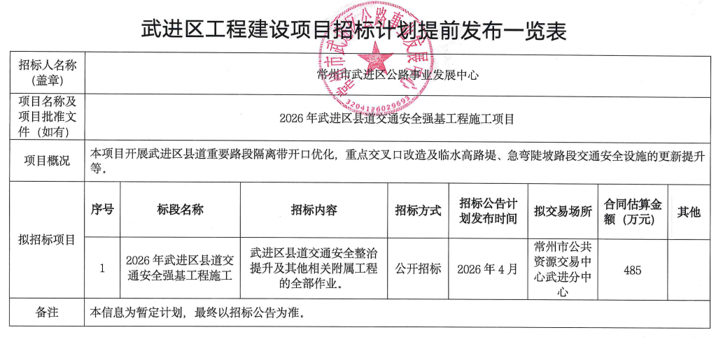 【招标计划】2026年武进区县道交通安全强基工程施工项目.pdf